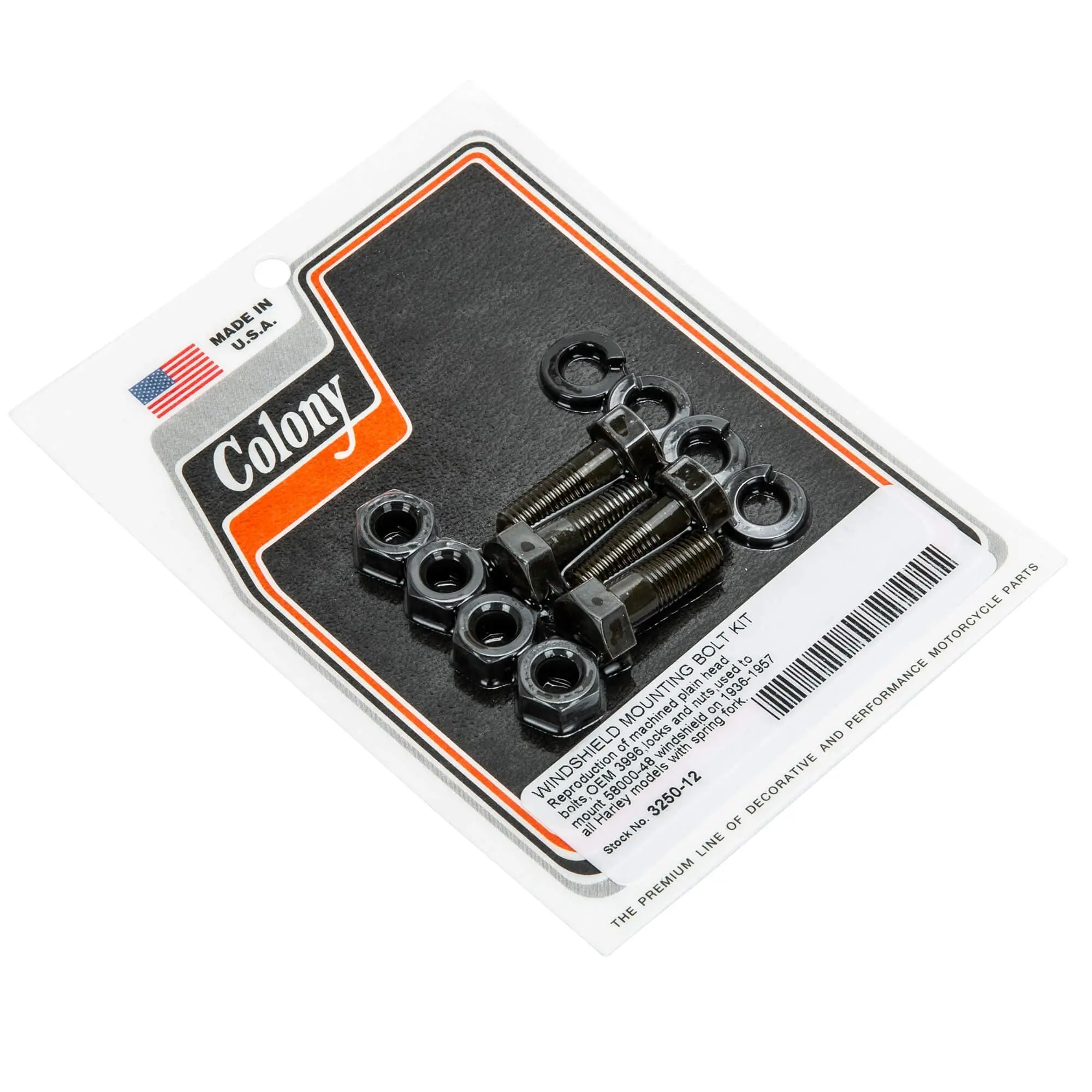WINDSHIELD MOUNTING BOLT KIT Reproduction of machined plain head bolts,OEM 3996,locks and nuts,used to mount 58000-48 windshield on 1936-1957 all Harley models with spring fork.