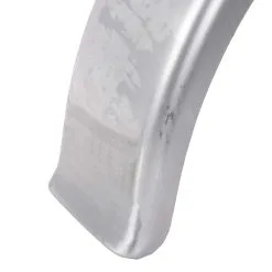 These thick & sturdy steel flat fenders are 6″ wide, and constructed from heavy gauge steel. They fit a vintage-style, high-sidewall 16″ tire quite well, and also work with 18″ and even 19″ rims, though the full fender length may not follow the tire radius spot on so cutting the fender shorter may look better.Â