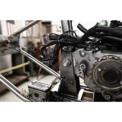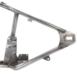 The Gasbox full frames are the highest quality and best engineered available. This frame allows direct bolt-in fitment for 2004-2022 Harley-Davidson Sportster engines (except Revolution Max engines), which are rubber mounted. Frame construction is thick-walled 1″ diameter tubing with 1-1/2” backbone and seat post, completely TIG welded. The rigid rear section has approximately 4″ of stretch and is set up to have 2″ of drop as compared to a stock frame. The steering neck is set at 32° for a perfect stance.