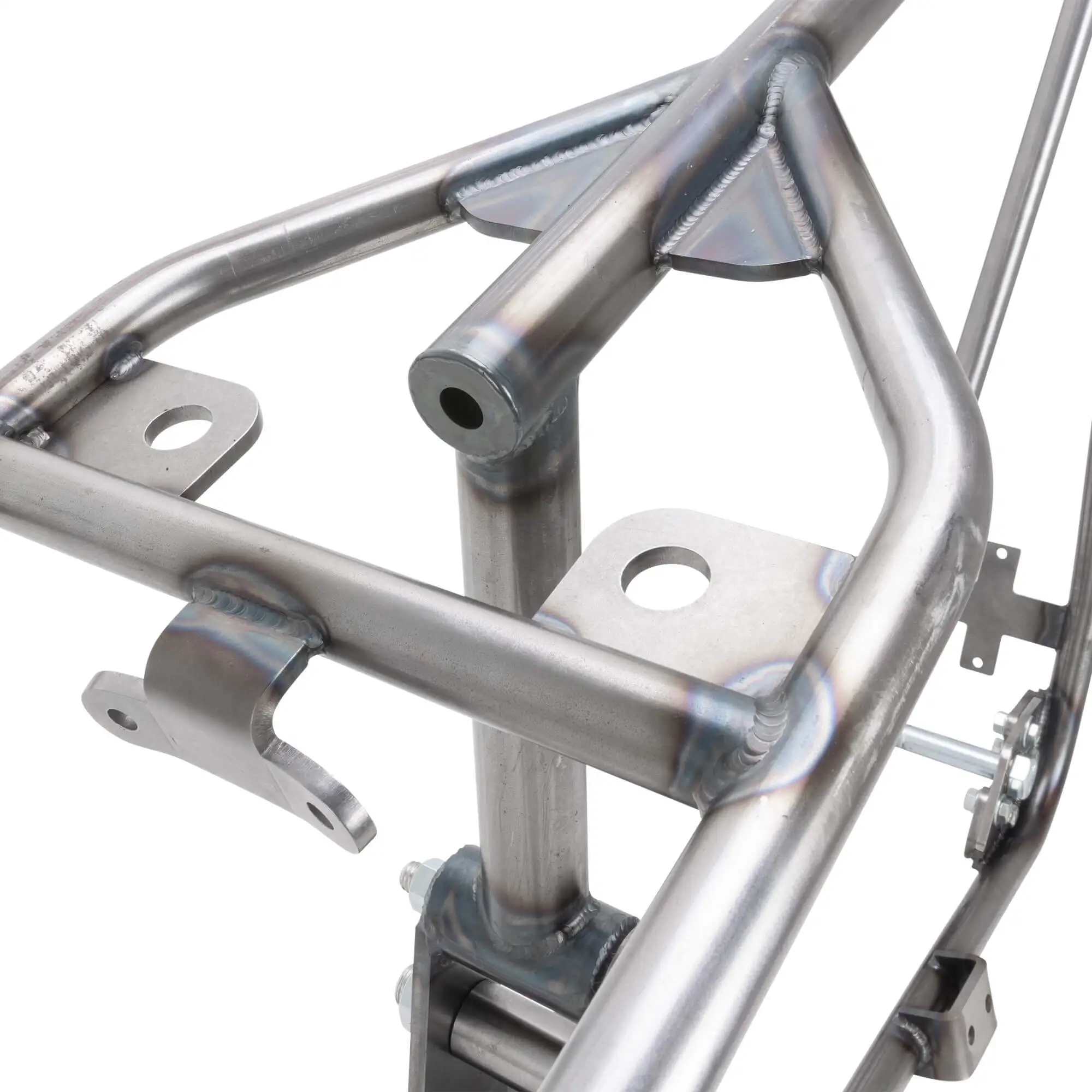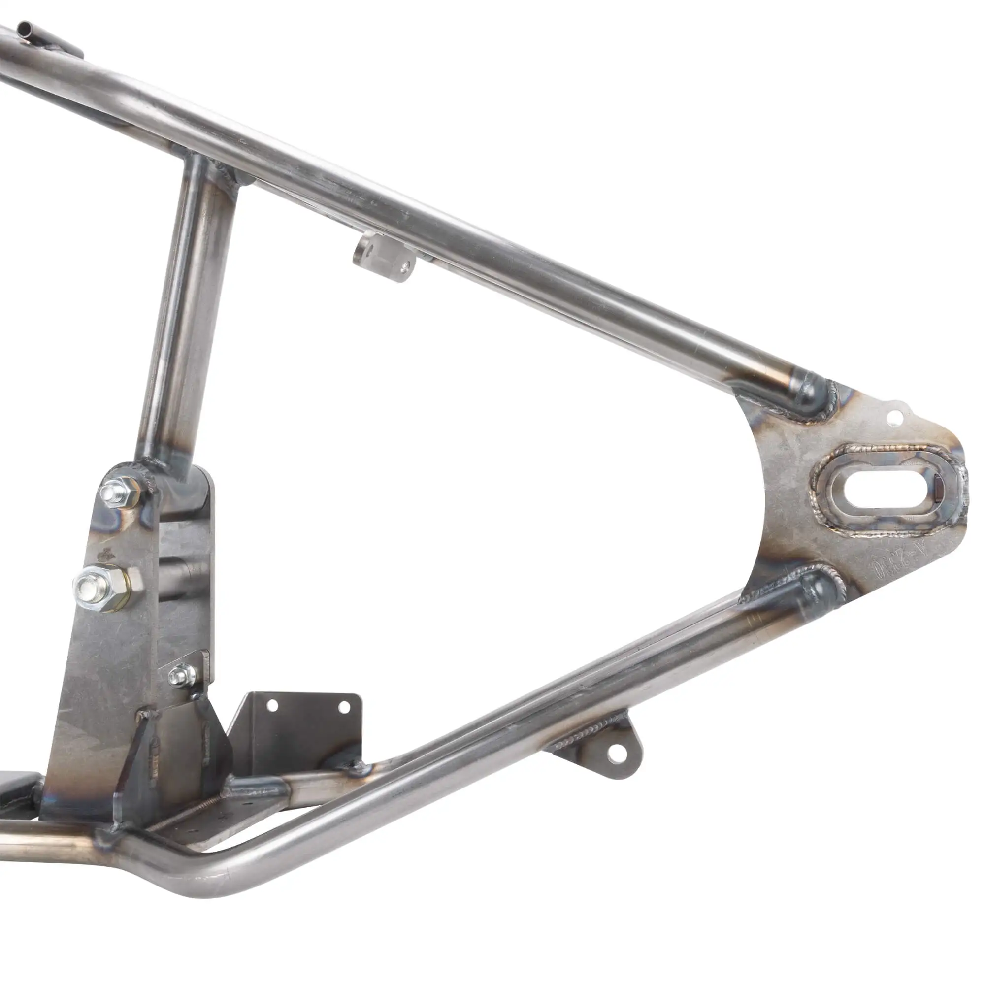 - The frame has an integrated bracket in front of the engine for the stock rectifier.