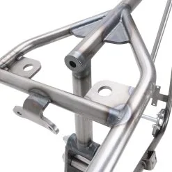 The engine is rigid-mounted in the frame, eliminating the rubber bushes. With a rigid rear section as found on this frame, the belt drive must be converted to a chain drive (