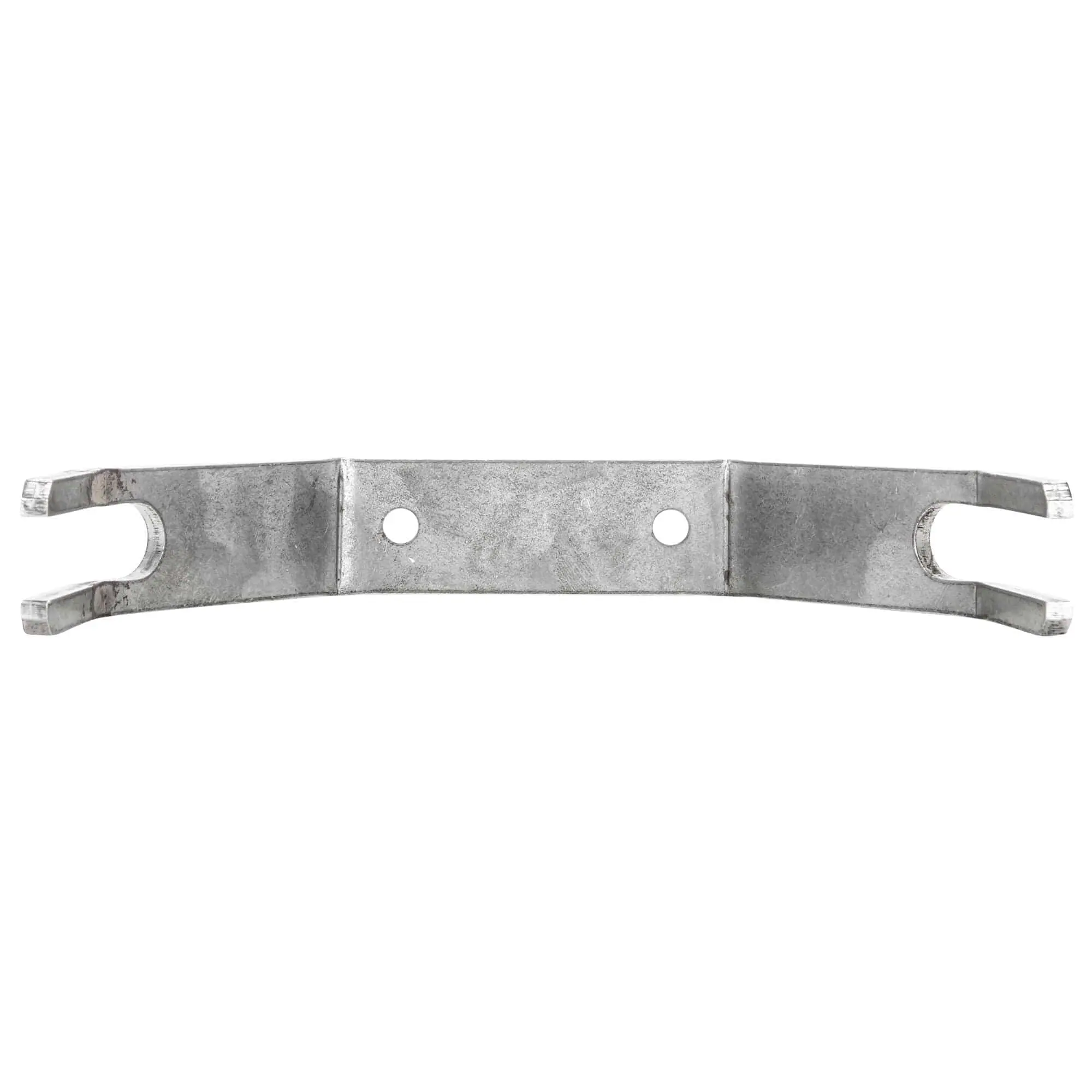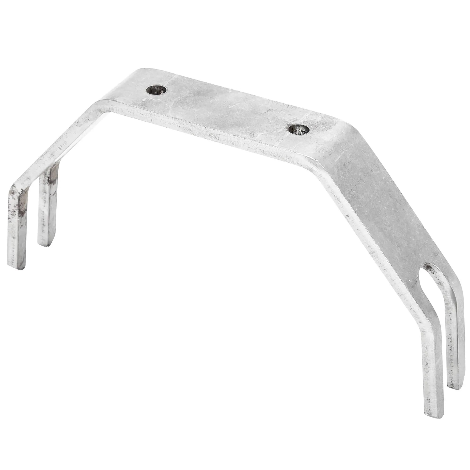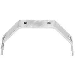, or any fender with a similar width and a flat profile. Heavy-duty 3/16″ mild steel. This fender mount is for use with wider frames such as Harley-Davidson rigid-frame Knuckleheads, Panheads, Shovelheads, Ironhead and Evo Sportsters and other similar size motorcycles. It accepts 1/2 inch diameter round steel rod (not included) and is properly angled to clear the fender. To use, simply weld straight pieces of steel stock as fender struts, or use this as a component in a low grab rail or tall sissy bar. The fender sits on top of this strap and bolts to it, there are two 1/4 inch diameter holes in the bracket ready to go. This is a very secure and stable way to mount your fender as it sits directly on this bracket instead of only being support by hardware bolted through the fender itself. This fender mount pairs perfectly with a